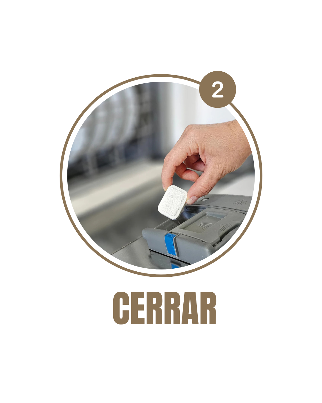 - Coloque el TAB en el depósito de dosificación de la máquina lavavajillas.
